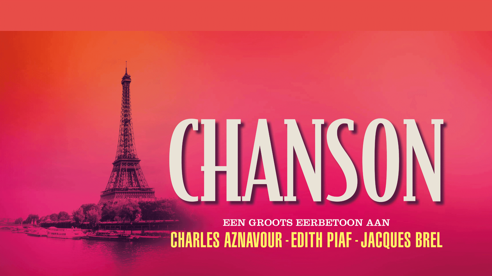 Chanson is een groots theaterconcert met een indrukwekkend ensemble van negentien musici en solisten die samen een eerbetoon presenteren aan dit immens populaire genre. Dit is misschien wel de grootste voorstelling rond Franse chansons die ooit in Nederland te zien was. Het concert is de ultieme hommage aan het Franse lied en neemt je mee naar de straten van Parijs.